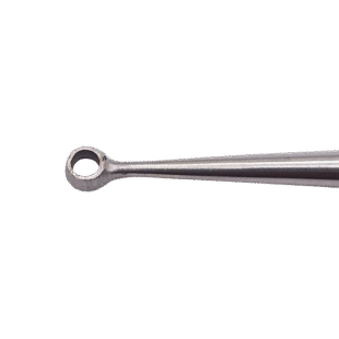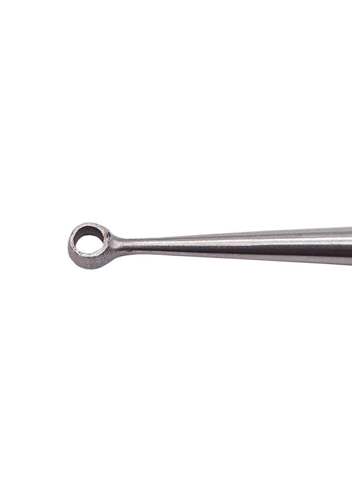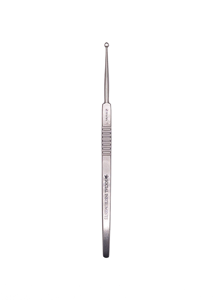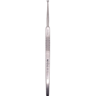 Cureta de alta precisão, fabricada em aço inoxidável cirúrgico, ideal para procedimentos dermatológicos como remoção de lesões, verrugas e tecidos superficiais. Leve, resistente e esterilizável, garantindo segurança e durabilidade no uso clínico.