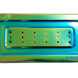 Estojo de Aço inoxidável Perfurado 26cm X 14cm X 6cm Plasma Furta-cor, em Aço Inoxidável Cirúrgico de alta qualidade.