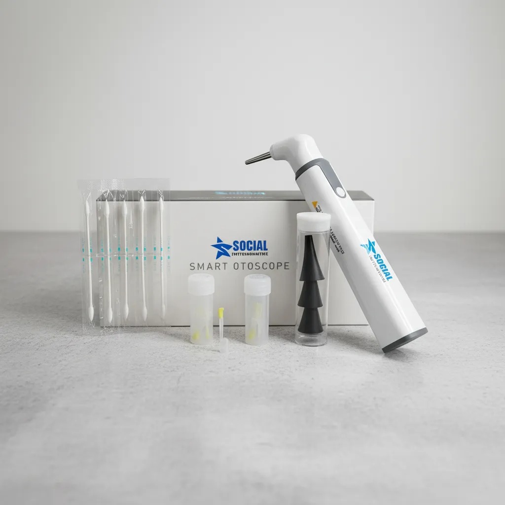 Apresentamos o Otoscópio da Social Instrumentos. Com 3.9mm de diâmetro, ferramenta de remoção de cera de orelha, 6 luzes led e várias lentes de vidro revestidas, oferece os melhores ângulos para ver e limpar o canal auditivo. É a ferramenta perfeita para remover cera de orelha para adultos e crianças com segurança e completa.
