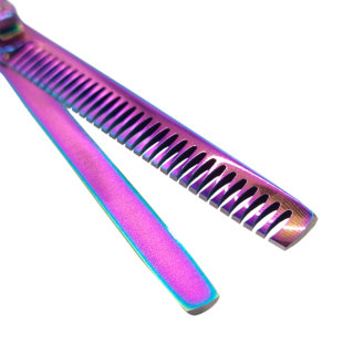 Fabricada em inox de alta qualidade, a durabilidade e resistência da tesoura garantem um desempenho excepcional ao longo do tempo. Seu modelo Tubarão é perfeito para desbastar e texturizar, oferecendo resultados impecáveis em cada uso.